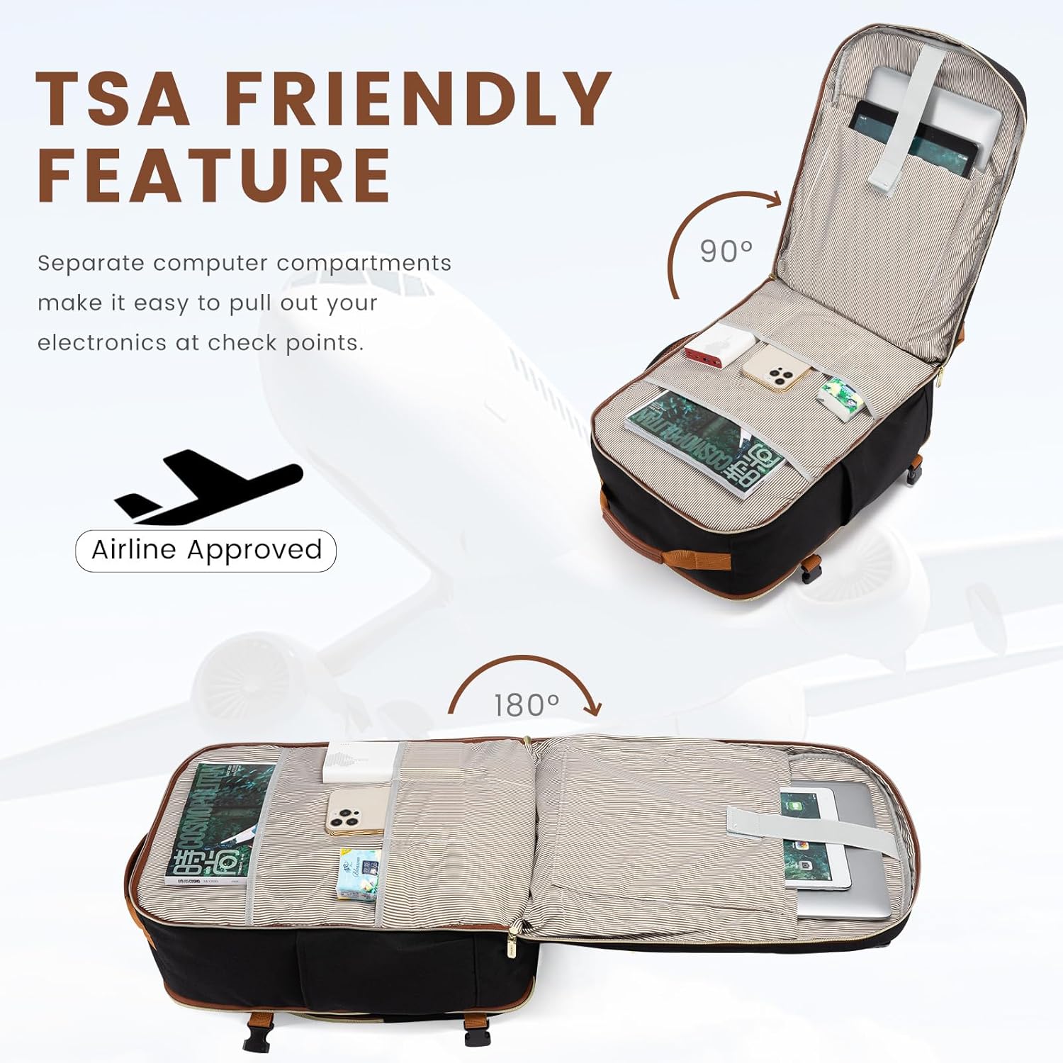 Designed for both women and men, this 17-inch carry-on backpack is perfect for traveling on airplanes. It meets airline requirements for a personal item, so you can breeze through security and have all your essentials within reach during your flight.